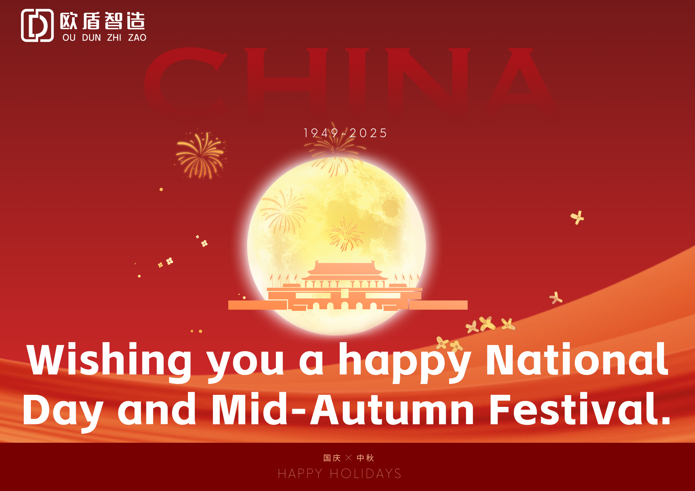 The moon is full on the birthday of the nation, and the sentiment is abundant on the double festivals. May the country be safe and sound, and the moon be bright and round. Zhejiang Oudun intelligent manufacturing Technology Co.,Ltd.Wishing you a happy National Day and Mid-Autumn Festival.